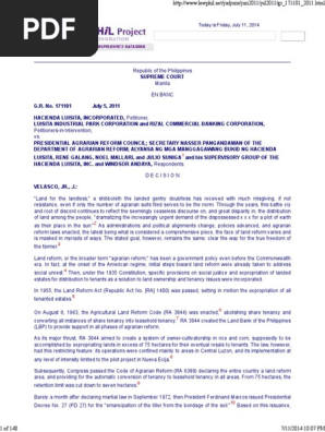 Hacienda Luisita V Presidential Agrarian Reform Council Et Al
